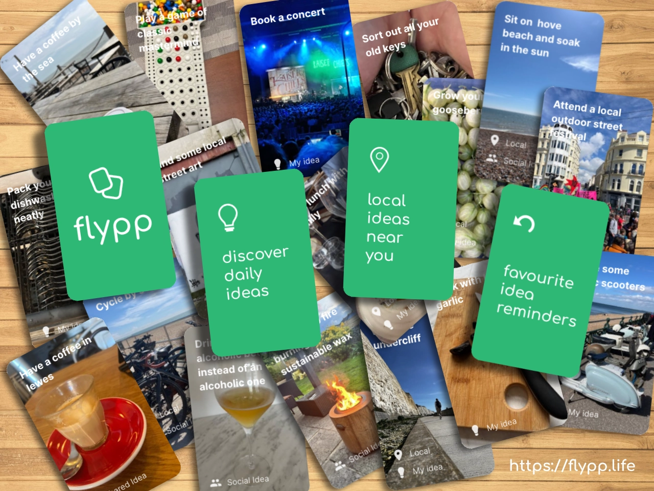 In addition to showing you ideas added by other users, Flypp uses AI to generate new, inspirational ideas for things to do, based on your personal preferences.
